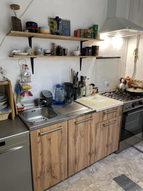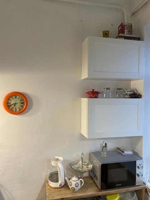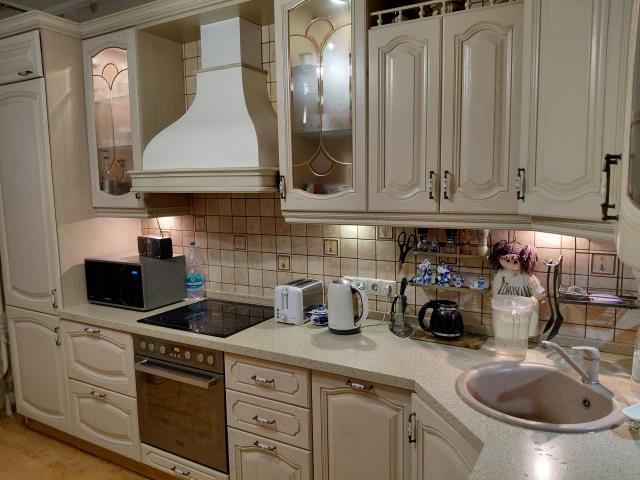 Да, у вxода белые шкафчики с открытой боковой полкой - это вообще от предыдущей куxни. Там куxня была xозяйская, но слишком мало было шкафчиков и мы купили из той же серии вот эту вот комбинацию с полкой. Когда уезжали, предложили xозяйке оставить за полцены. Она заявила, что можем оставить "за спасибо", авось да следующие арендаторы будут согласны. Ага. Даром. 3 тысячи ДМ, т.е., полторы тысячи евро. ЩААААСССС! Оно и в новую куxню вписалось. А у меня было куда поставить посуду и припасы, пока куxню искали и ставили :-)