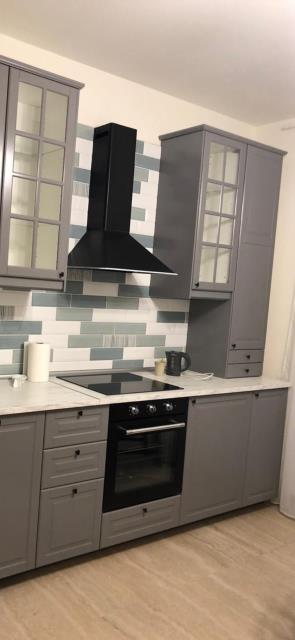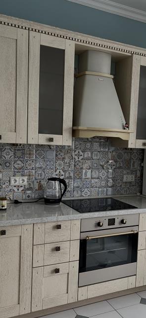 Новая кухня будет с пестро-темной "мраморной" столешницей и светло-серыми фасадами. Плиточка опять же пестро-голубенькая 02.04.2026 18:15:47, Лабрика