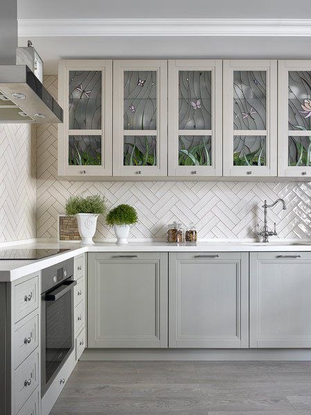 У нас сейчас наоборот все оттенки серого, темно-серый, антрацит, бетон модно, причем все сверху донизу в одном цвете. Цветные редко, кто берет. А у них еще и ручки и стулья к стойке золотые..