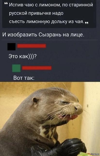 Приехала дочка на маленькие каникулы, рассказывает всякое, в том числе про очень вредного препода со странностями. Говорит - его фотки нету, но он вот точно такой (показывает этого выдра), одно лицо! ))