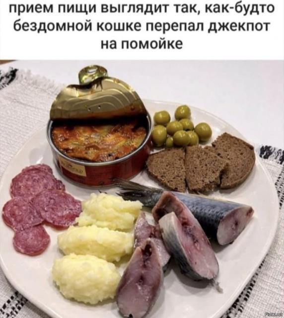 тут детки мои раздобыли где-то банку шпрот. присылают фотку с открытой банкой на тарелке и багетом (примерно как на фото). муж пишет: неправильное у вас блюдо. к шпротам черный хлеб нужен. невестка: чего ж я вам плохого сделала? все же хорошо было)