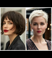 Стрижка та, что слева вам будет к лицу, хотя может и совсем короткая подойдет.