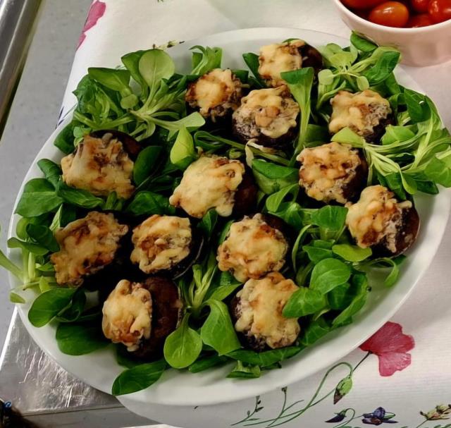 Мы часто делаем, фаршируем козьим сыром с чесноком, прованскими травами и порезанными ножками этих шампиньонов или портобелло