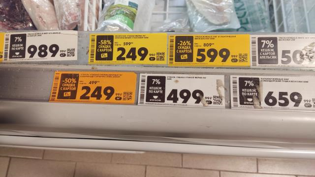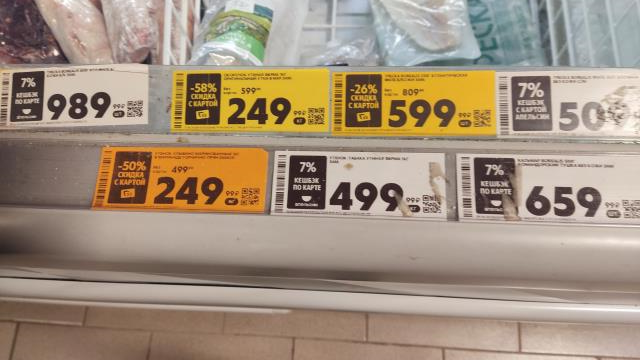 Я иногда смотрю именно из-за языка, потому что уже натыкалась в Пятерочке на языки (но они тогда были импортные) по каким-то смешным ценам несколько лет назад. Но тогда это была их цена, а не такое вот снижение.
