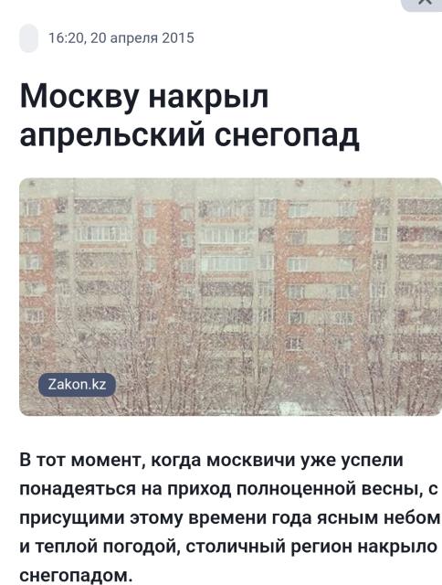 Снег был 9 апреля, я ездила биометрию сдавать, пришлось такси вызывать. Сегодня еду паспорт забирать, и опять снег, на такси не рискну, застрянет вдруг в пробках, потащусь на метро