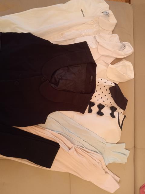 Отдам пакет к школе. Рубашки 3 шт,, фирма Смена, жилетка Карамели, футболка Демикс 1, водолазка розовая и голубая. 2 блузки с коротким рукавом, и колготки синие. Встречи метро Алтуфьево, или по адресу.