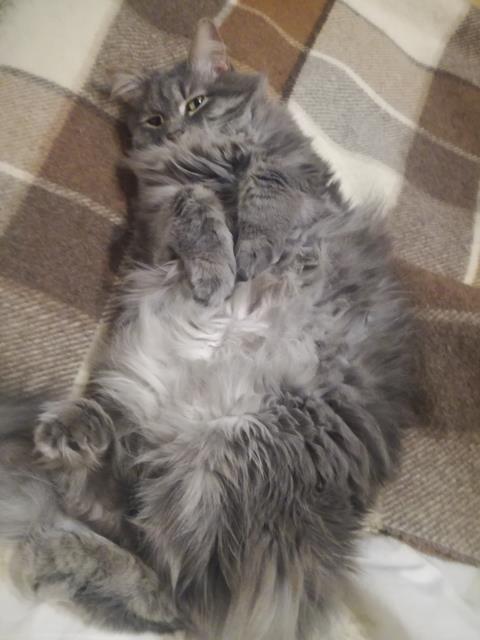 Божечки-кошечки, какое чудо пушистое! Наша Мурыса тоже любит так лежать, спина широка, позволяет)