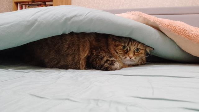 У моих детей такая кошка. Однажды пролежала под одеялом часов 6, пока у них гости были. Я ее там нахожу.