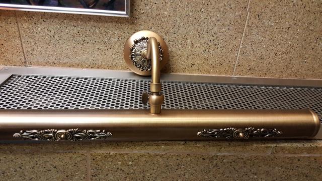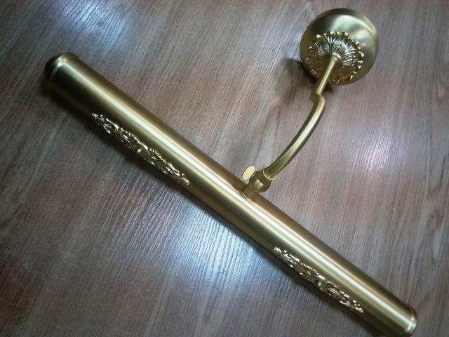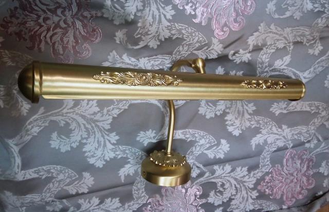 Продаётся абсолютно новая декоративная подсветка для картин и зеркал. Не использовалась, не б/у. Длина – 43 см; высота – 15 см; отступ от стены – 20 см. Мощность рассчитана на 2-е лампочки светодиодные или накаливания по 25W; цоколь E14 (лампы в комплект не входят). К стене крепится установочной пластиной (она в комплекте). Есть несколько штук двух цветов: бронза и золото. Цена 15 000р/шт.