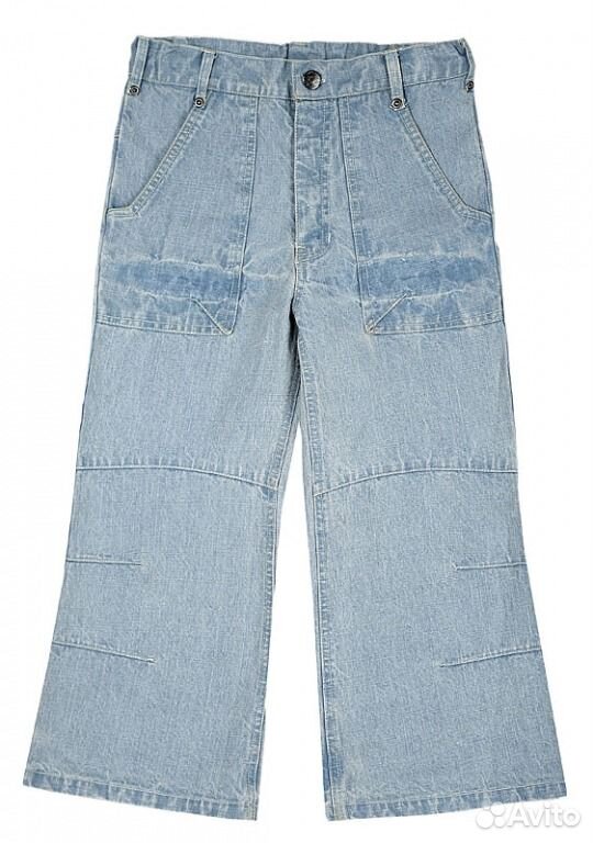 Очень добротные б/у бриджи, состояние новых, из тонкой джинсовой ткани, с накладными карманами. Пояс регулируется внутренней резинкой. Ниже колен.