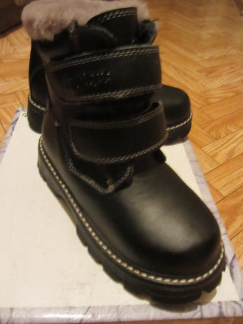 Продаю новые детские зимние ботинки кожаные натуральный мех. Цвет чёрный, модель сапоги на липучках. Унисекс, подойдут и для мальчика, и для девочки. Размер 30, по стельке 19 -19.5 см. Из-за постоянных просьб с замерами потерялась одна стелька. Цена 5000 руб. Территориально Телецентр Останкино.