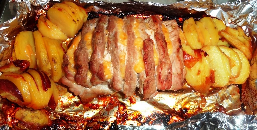 2 протвеня запеченной картошки по-деревенски (2 мало, пожалуй)