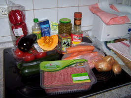 Все овощи жарено-тушеные варю в томатном соусе в большой кастрюле, соль по вкусу, уксус не используется, и разливаю по теплым нестерильным банкам, закрываю крышками прямо из кипящей кастрюльки. Т.е. одну банку налила-закрыла-перевернула на полотенце-накрыла пледом, все это быстро. Теперь следующую. Наливаю половником через широкую нестерильную воронку, чтоб верх чистый был. Наливаю как можно полнее, чтобы воздуха было минимум. Через несколько часов раскрываю, переворачиваю, как остынет убираю.