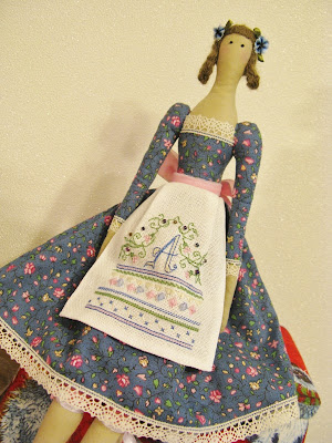 Просто прелесть! Уж на сколько к игрушкам равнодушна, но эта очень понравилась, и вышитый фартучек ей к лицу! :)
