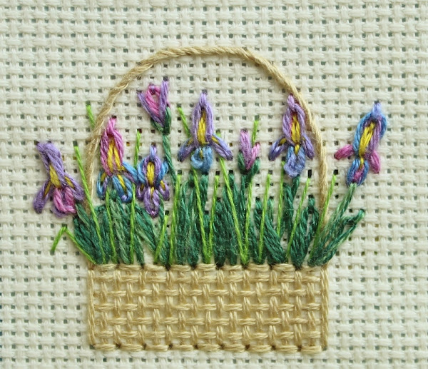 Я попробую сделать схему, но там, если ты посмотришь, есть тонкие "травинки", как их описывать я не знаю, потому что это были последние штрихи, НО они шились не поверх уже вышитых ирисов, а я проводила иглу под ними, чтобы травка как бы была на заднем фоне