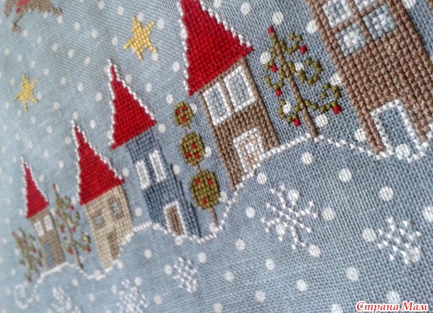 В журнале видела снежинки белым вышиты на круглых подвесках.