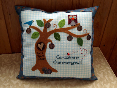 Что теперь дарят на свадьбу - денежку! А куда ту денежку класть - в кармашек! А где ж тот кармашек - да с обратной стороны подушечки, на которой выросло настоящее денежное дерево, что б денежки в молодой семье никогда не переводились!