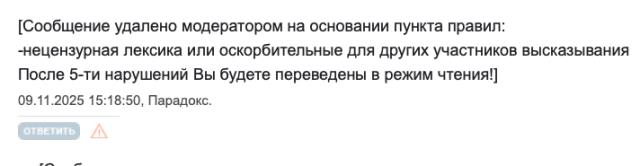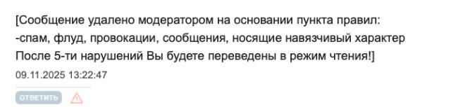 Дайте, пожалуйста, ссылки на данные комментарии, чтобы мы могли изучить ситуацию подробнее. 12.11.2025 17:06:48, Moderator72
