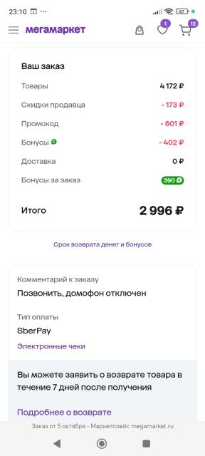 Они ещё промокоды присылают, пример последней доставки, ещё 400 руб бонусами вернут. Очень выгодно получается для меня