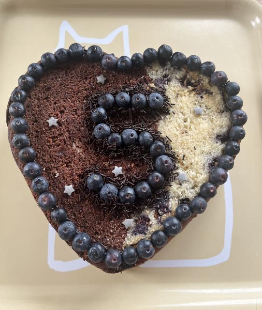 Мы вчера закупились шоколадным и марципановым тортиками (то, что он обычно обожает), но имели неосторожность спросить так между прочим: «А какой торт ты хочешь завтра на десерт, Тео?» Он возьми и скажи: «Черничный!» А старшей только дай испечь что-нибудь, так что она с рвением взялась за дело)) Это, конечно, скорее пирог, и с голубикой, но от души :)