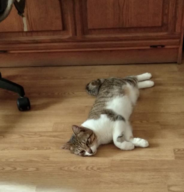 Тут не только в его желании дело. Надо ходить, смотреть под ноги. Приготовить себе завтрак-обед и поесть - целый квест, кот считает, что эта еда - его еда! Выйти в поликлинику из дома это: сперва выманить кота из комнаты в коридор, потом выманить его от входных дверей и выйти. Вчера он научился открывать разные дверцы и таскать оттуда всякие мелочи. Губку для мытья посуду стащил еще раньше, я спрятала, он открыл дверцу и снова стащил. И такие изобретения постоянно - кот осваивается :)