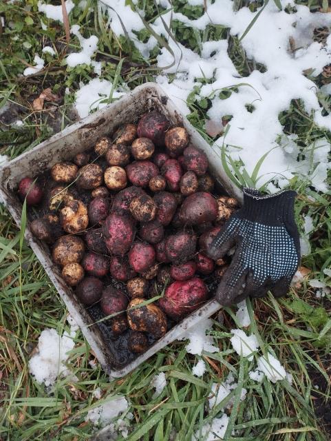 А в субботу - тоже по снегом - выкопала последние семь (из десяти :-)) ) кустов картошки в огороде .. Тоже, считай, приключение... Люблю такие несообразности :-)