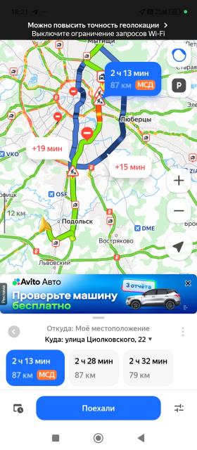 Я вообще перед поездками всегда карту смотрю и еду по тому маршруту, которые мне кажется максимально простым и понятным. Доехать из Подольска до Королева по МКАДу совсем не сложно, чтобы в пробку не встрять лучше максимально рано выйти из дома, да хоть в шесть часов, ну если сможете проснуться и ночной смены не будет, тогда вообще долетите.