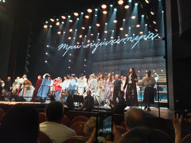А сегодня вот снова из Моссовета вернулась - давали "Три мушкетера". На эту постановку тоже отзывы весьма разнообразные, но если не забывать, что режиссер создал "драматический концерт" (связного спектакля не будет), знать всю историю наизусть (иначе вообще будет непонятно, что за куски диалогов и куда все побежали) и обожать музыку из одноименного фильма (хотя музыкальные номера взяты из одноименного мюзикла М. Дунаевского, М. Розовского, Ю. Ряшенцева - а там песен больше, чем вошло в фильм) - то очень даже можно получить удовольствие. Я, по крайней мере, осталась довольна ))