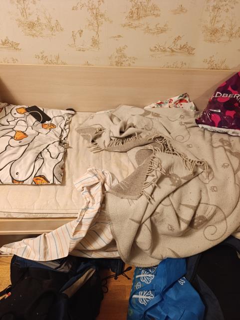 Вот это кровать младшего, и сейчас я буду орать))), потому что ресурсов моральных на педагогический подход у меня нет, а по первому и второму напоминанию он ничего не застелит. Пакет наверху - неразобранная мокрая форма из бассейна.