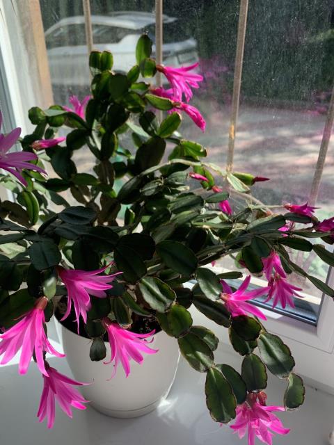 Невероятно красиво. От декабриста его отличает форма листьев и сроки цветения.