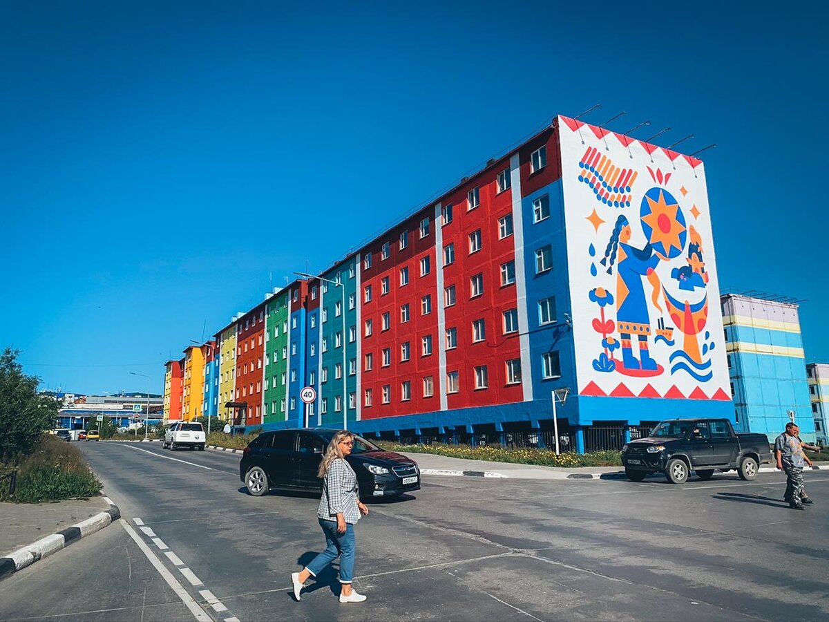 Разноцветные дома в Мурманске.