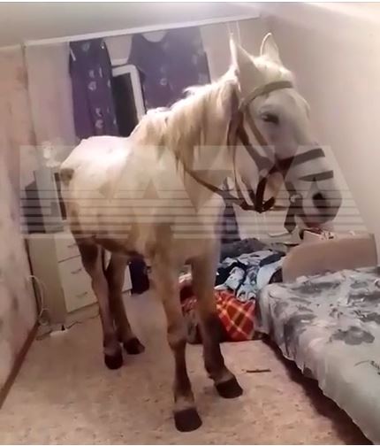 В Кемеровской области мужчина привел коня в квартиру, решил жену порадовать. Принцем на белом коне себя возомнил наверное :)