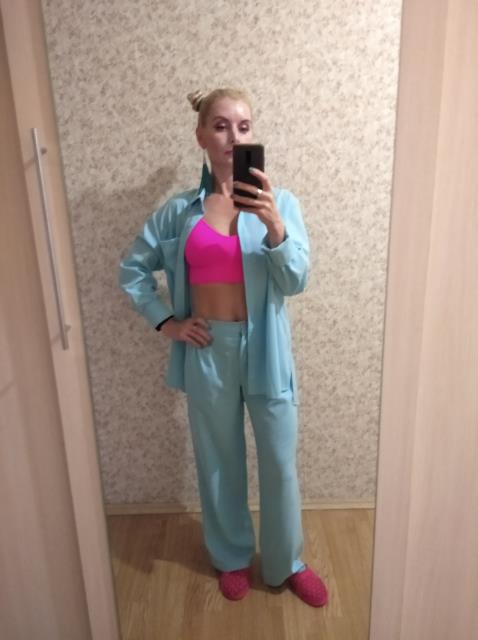 Такой цвет в сочетании с простой тканью и так себе кроем отсылает и к спец.одежде. В моей стоматологии девочки-медсестры в таком ходят.