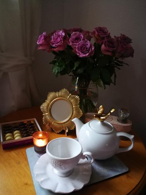 Заварной чайник из стекла в комплекте с подставкой под свечку. Чёрный чай не люблю, поэтому или зелёный или мятный.