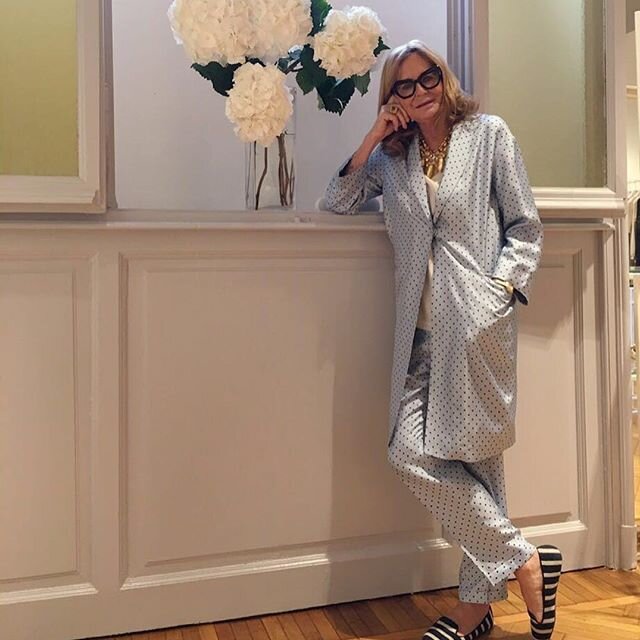 Шелковый брючный костюм на ум приходит →