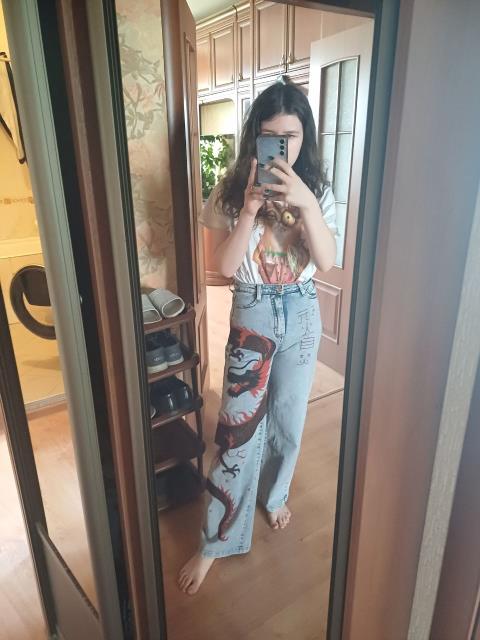 Моя рукодельница сильно в учебе, сделала только дракона на джинсах для дочки MyFarm, она в воскресной теме показывала.