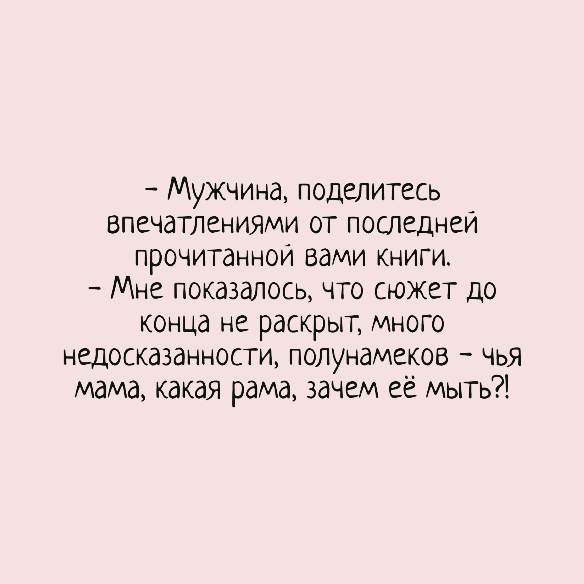 P.S. Это не про дуболомов. Навеяно некоторыми дискуссиями, где оппонент говорит: я читал, я разобрался. Что читал, неважно?