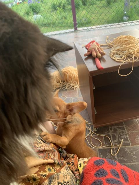 Если бы не комары так и сидела бы на террасе, на одной руке кот Маркиз на другой собака Олли , пристроившая свой куцый хвостик коту на спину))эх, не сфотографировала.