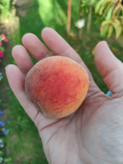 Это персик. Точнее, то, что от него осталось. Мы основное дерево давно срубили, а это была молодая ветка. Каждый год я порываюсь, наконец, уничтожить эту икебану. Но каждый год он сначала шикарно цветет, а потом даёт пару ведер сладких персиков. 09.06.2025 18:43:20, Хелен67