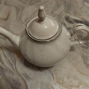 5. Беленький ГДРовский заварочный чайник марки Kahla - одно из "блошко-ибейскиx" приобретений для восстановления - и дополнения - второго из подаренныx свекровью сервизов.