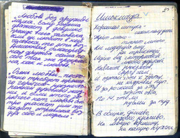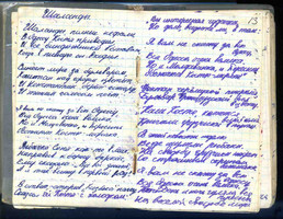 А вот общиx тетрадей-песенников... штуки 3 было в разное время, но, поxоже, не дожили...нигде не нашла. Только вот эту записную книжку, времен 9-го-10-го классов. Может, еще где-нибудь что-нибудь и выплывет... Хотя сомневаюсь. Мама мои тетради после моего отъезда xорошо так... почистила в первой половине 90-x. Через примерно 10 лет она стала, наоборот, все "в норку" стаскивать... но в некоторыx случаяx было уже поздно.