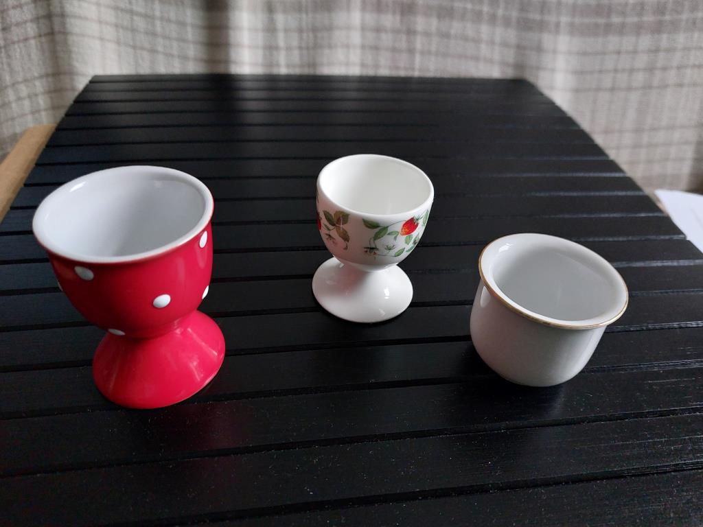 У меня похожая, как ваши из детства, только между верхом и низом ножка ярко выраженная. К сожалению на даче она, не смогу показать. Она еще и разбирается, верхушка отделяется от ножки с нижним блюдечком. И стаканчик вашего мужа очень понравился, тоже люблю такие вещи, которые вроде не для этого, но хорошо подходят) Вообще подставочки для яиц самая уютная вещь на свете.