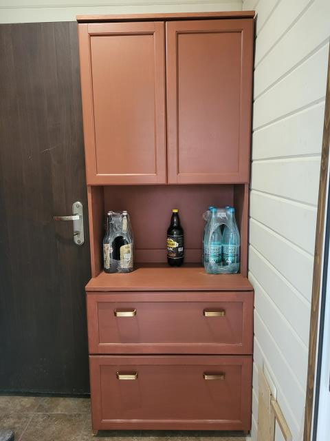 Муж - молодец , хорошо сделал . Но мне кажется , ручки на дверцы нужны , а то как-то пусто там .
