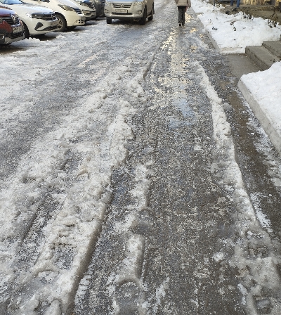 И было, конечно, ощущение "завтра-послезавтра эта красота растает"... Ага, как же :-) Назавтра днём было -1 - и оно стоит до сих пор. Несмотря на безоблачное солнце. Ночью - -5, днём - плюс-минус один. И, видимо, эти 20 см снега уже не растают.... На фото проезда - это не "снеговая каша" - это твёрдый лёд....