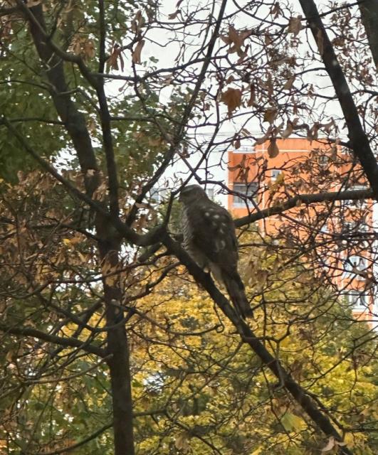 Интересное сегодня совпадение, к дочери в Москве в окошко заглянул ястреб-тереревятник(?) , а ко мне пара воробьишек. За 17 лет ни разу на участке не видела воробьёв.