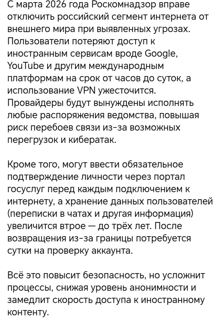 Касаемо ограничений это у них от трусости. Боятся правды, понять можно, правда для них может и вредна. 10.11.2025 13:04:29, Arseniy
