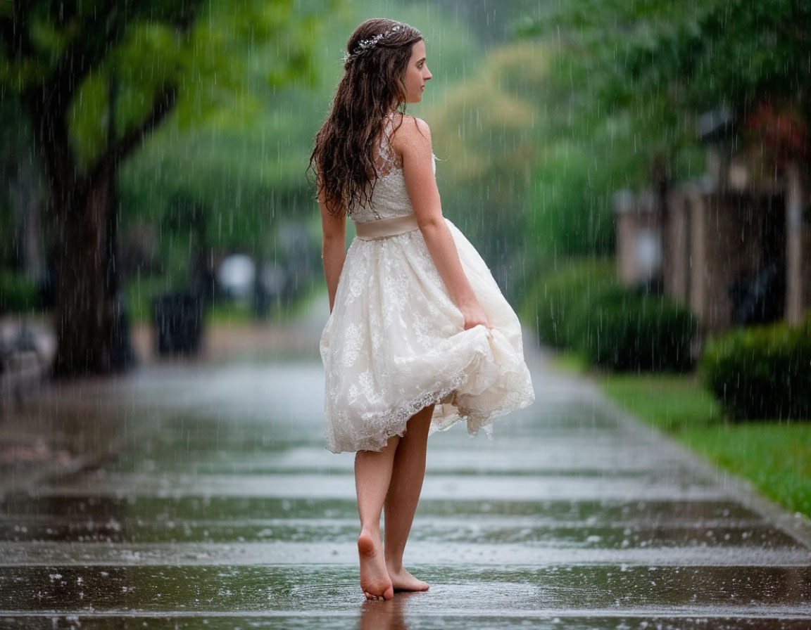 Зачем вы девушку босиком в ночной рубашке на дождь выставили, совсем непонятно. Жалко ее. Я подумала, что она от мужа сбежала