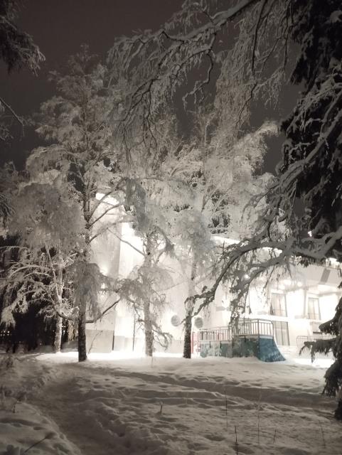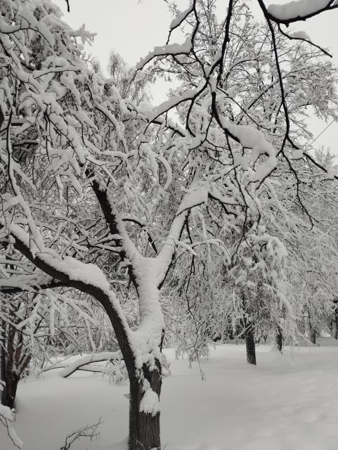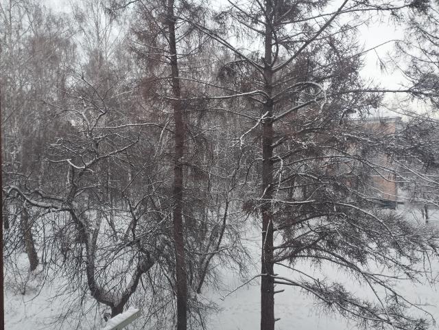 Пото растаяло на деревьях, на земле осталось "по колено", хотя двое суток было выше нуля. За последние сутки опять немного нападало на деревья (фото из окна, у нас уже сумерки), но веселее всего график температуры. Сегодня - -20 :-))