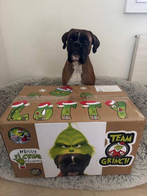 Ну и в завершение - боксерша Лотта уже получила от нас свою посылку с подарками.