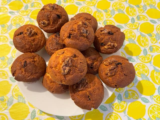 В кексы добавили сухую клюкву и орехи.